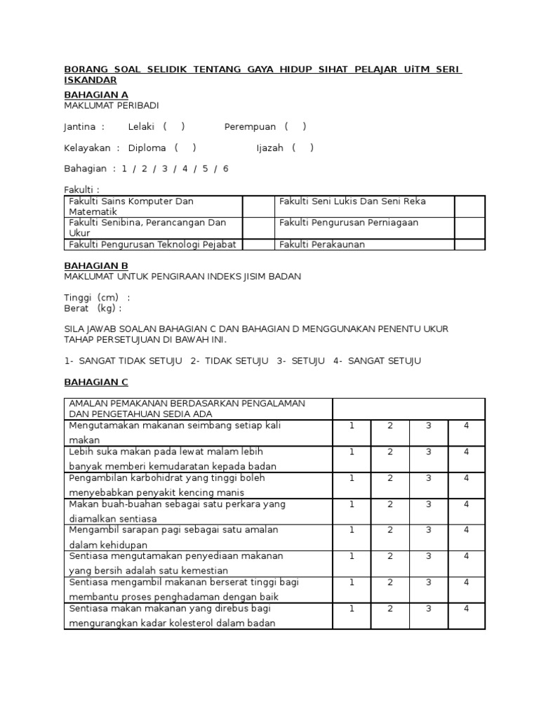 Borang Soal Selidik Tentang Gaya Hidup Sihat