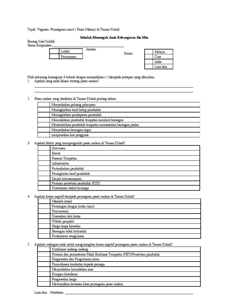 Pbs Stpm Contoh Soal Selidik Dan Penyusunan Data Dapatan Kajian