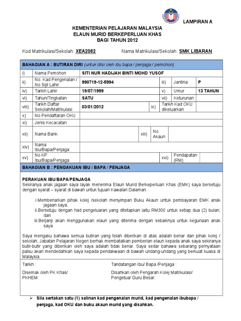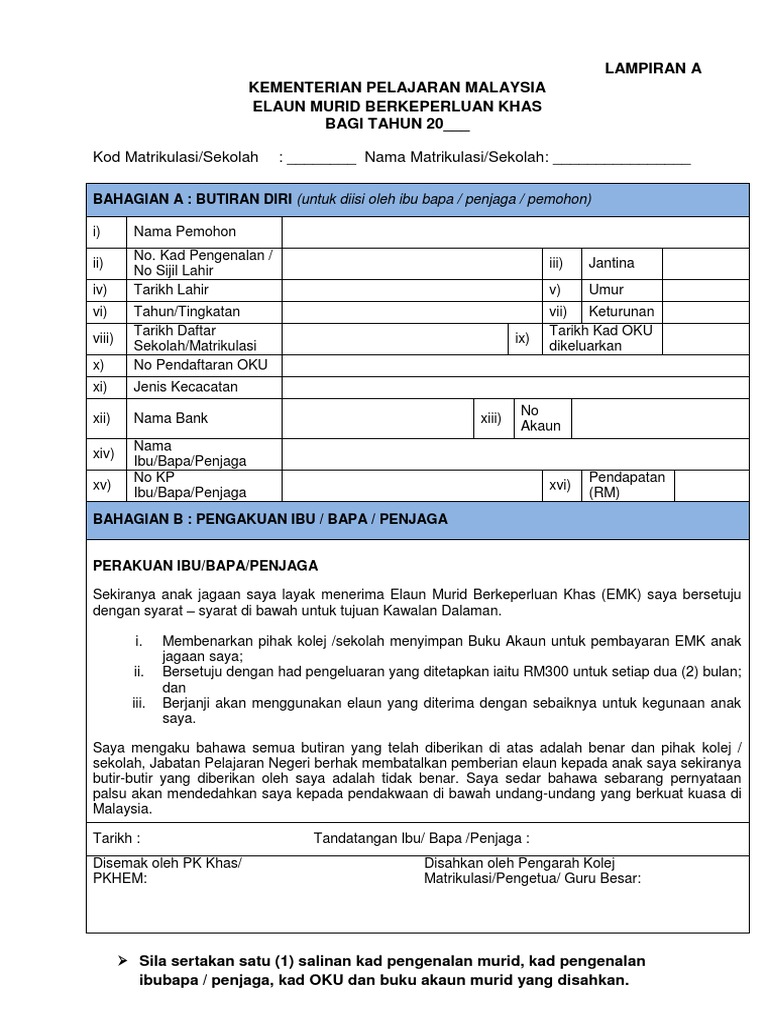 Borang Permohonan Emk Dan Borang Pengeluaran Emk