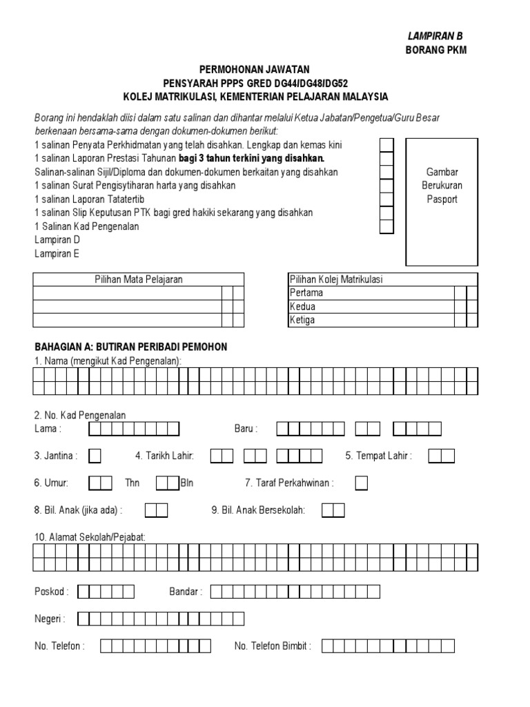 Borang Permohonan Pensyarah Kolej Matrikulasi