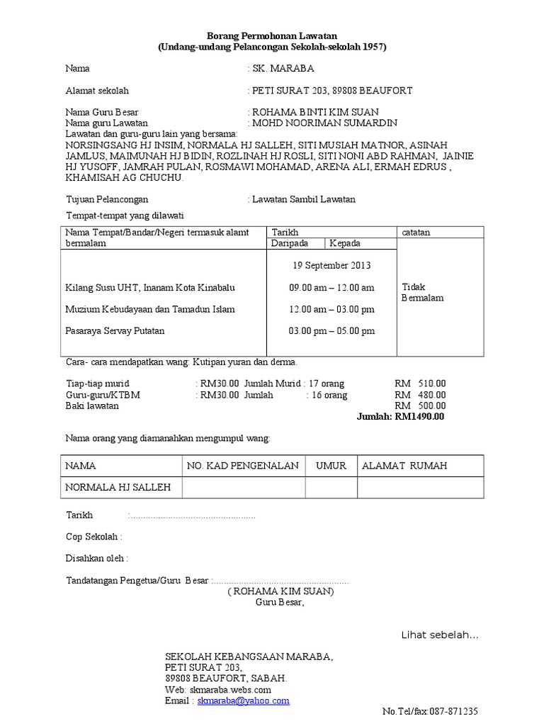 Borang permohonan pelancongan sekolah. School Work e borang. 4152015 format borang permohonan lawatan terbaharu 1. Borang Soal Selidik Syarikat Agensi Pelancongan.