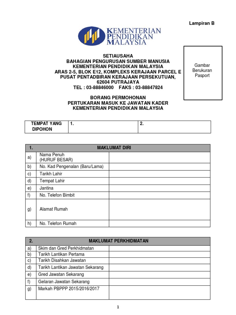 Lampiran B Borang Permohonan Masuk Jawatan Kader