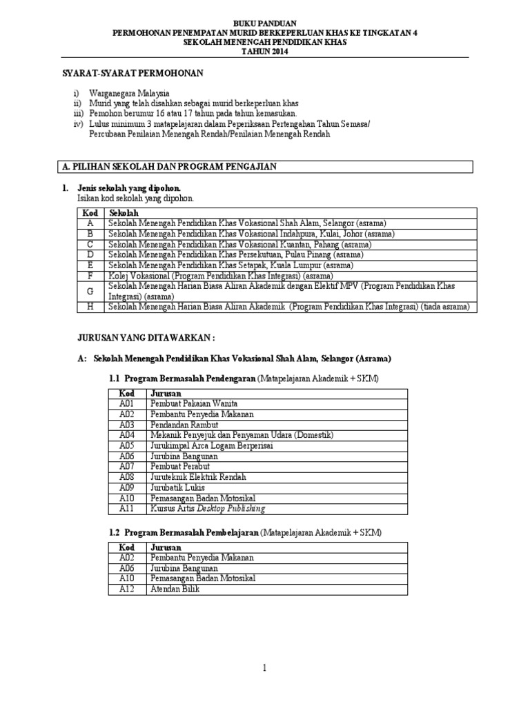 Borang Penempatan Vokasional Khas