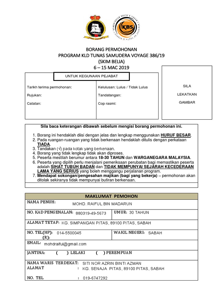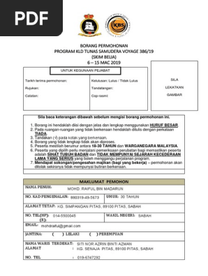 Borang Permohonan Kld Tunas Samudera Mac 2019 Belia