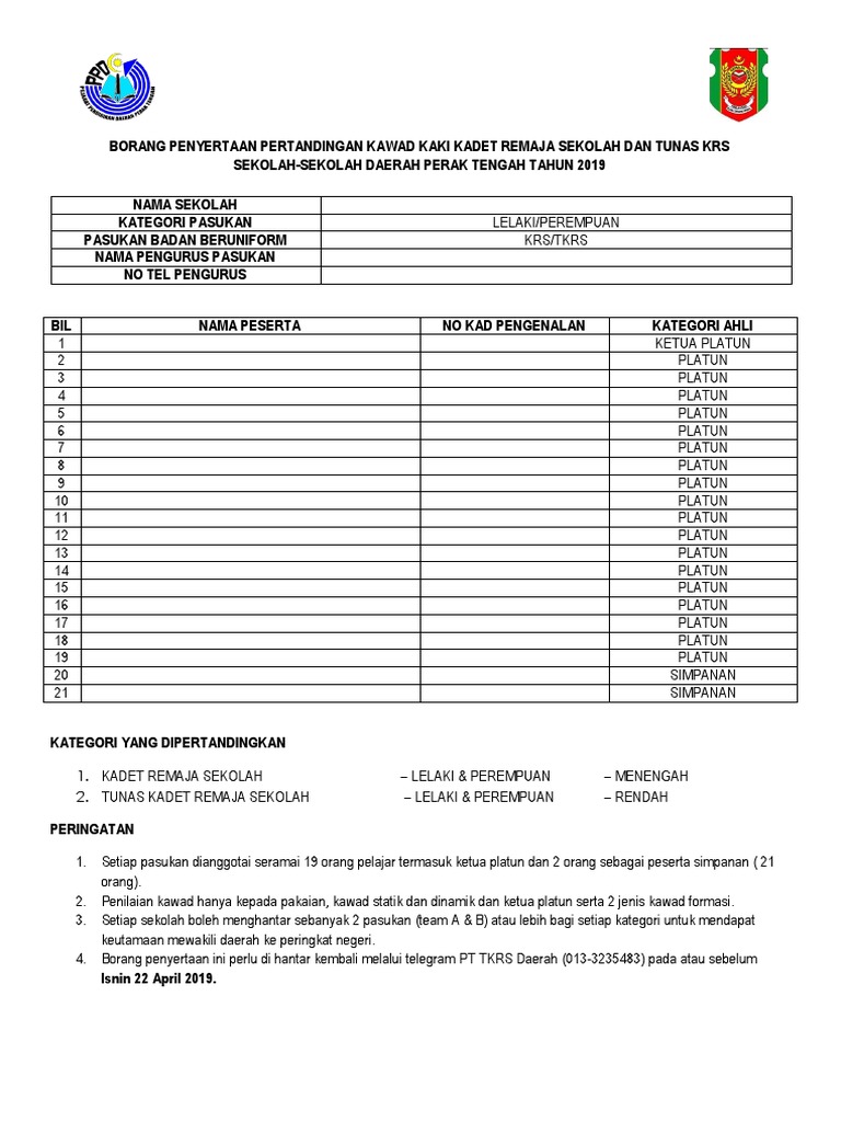 Borang Penyertaan Pertandingan Kawad