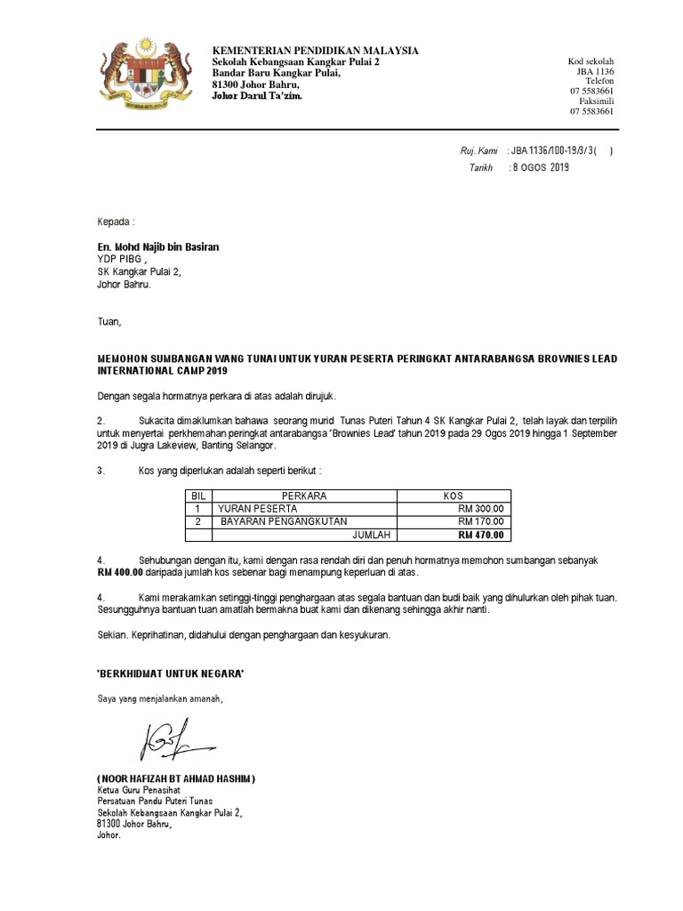 Mohon Sumbangan Kem Antarabangsa Tunas Puteri Docx