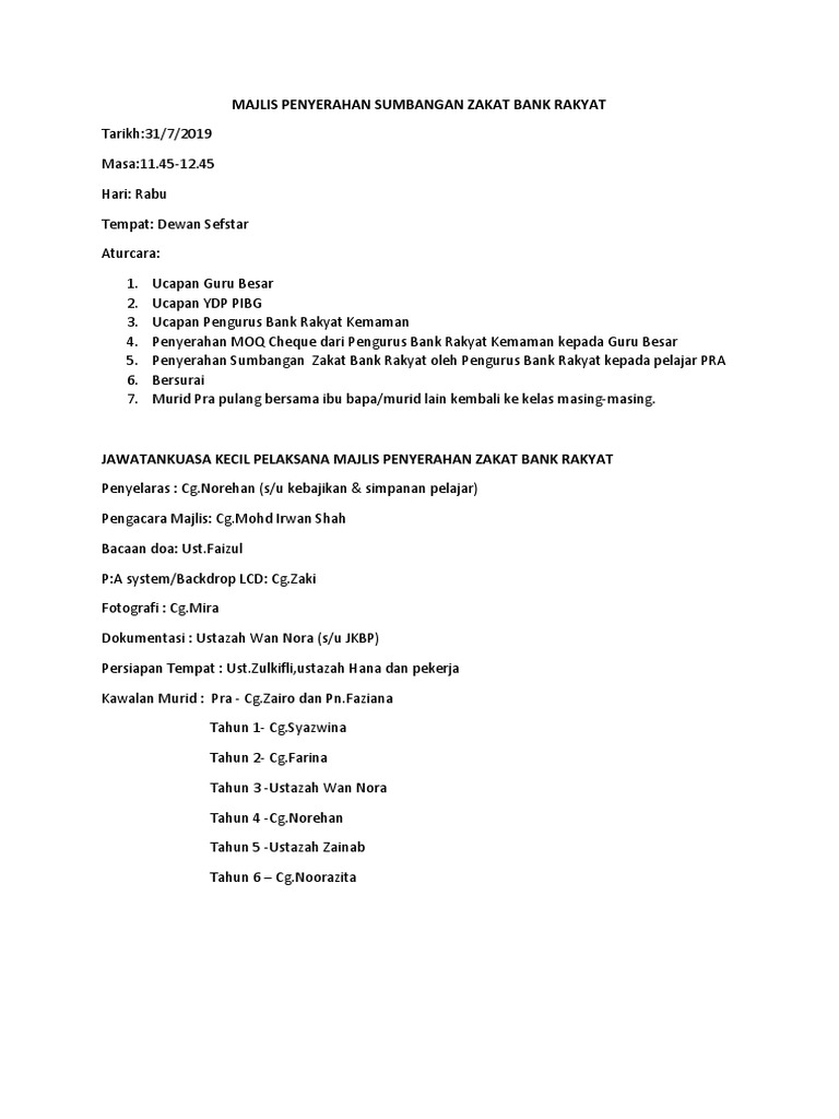 Majlis Penyerahan Sumbangan Zakat Bank Rakyat 2019 Docx