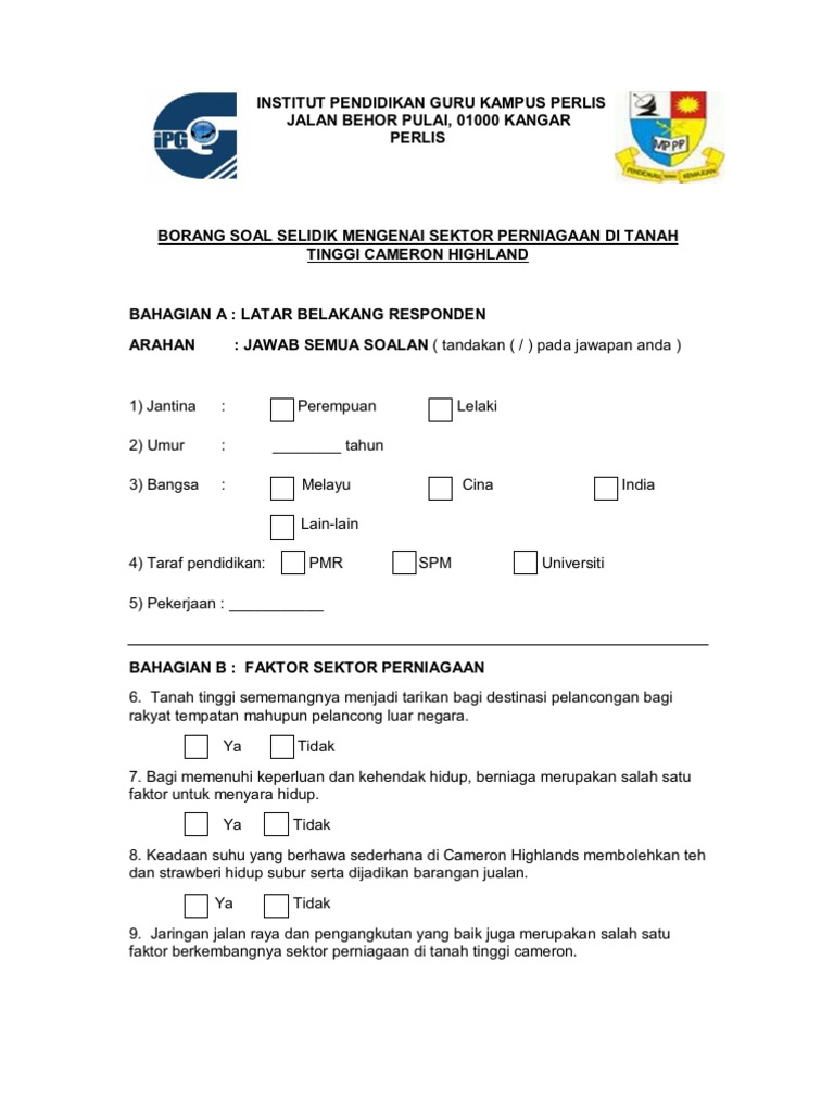 Dapatkan kad perniagaan beliau. Contoh Borang Soal Selidik Tentang Pelancongan. For more information and source see on this link.