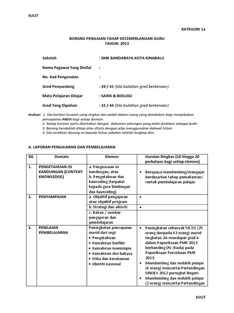 Borang Kategori 1b Guru Docx Sulit Kategori1b Borang Penilaian Tahap Kecemerlangan Guru Tahun 2017 Sekolah Sjk T Ladang Kulai Besar Kulai Course Hero. Borang Kenaikan Pangkat Dg48 Ke Dg52. SULIT KATEGORI 1b BORANG PENILAIAN TAHAP KECEMERLANGAN GURU TAHUN.