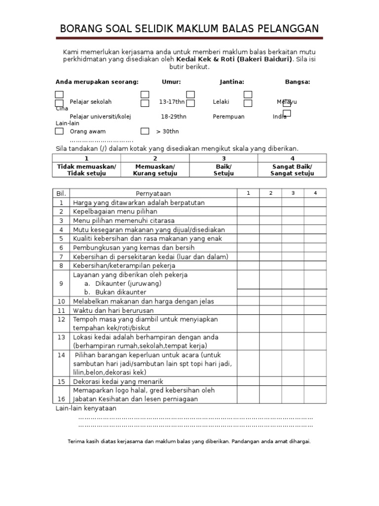 Borang Soal Selidik Kepuasan Pelanggan Page 1 Line 17qq Com