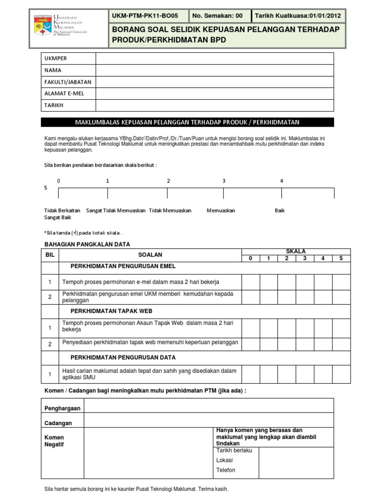 Ukm Ptm Pk11 Bo05 Borang Soal Selidik Kepuasan Pelanggan Bpd