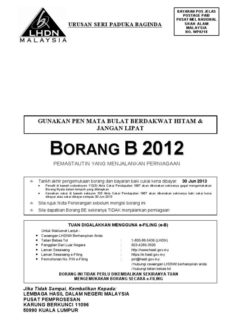 Soalan Lazim Borang B Lembaga Hasil Dalam Negeri