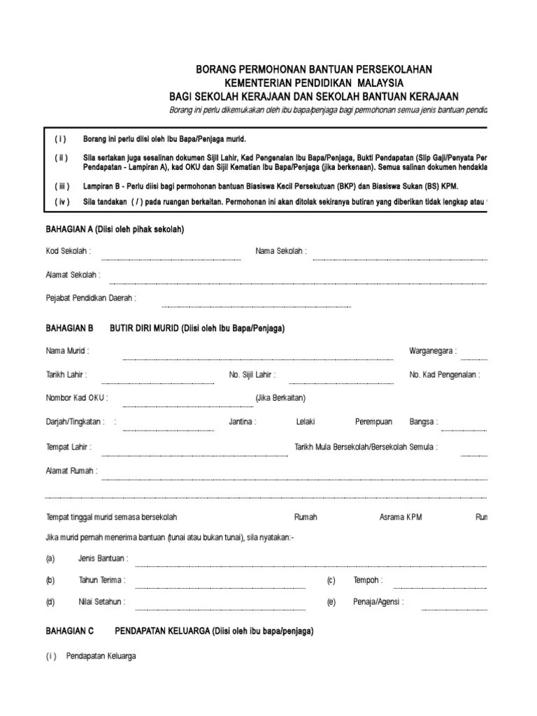 Borang Permohonan Bantuan Persekolahan Sanx Xox