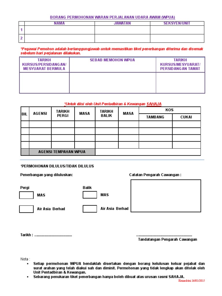 Borang Permohonan Tempahan Tiket Penerbangan Waran Perjalanan Udara
