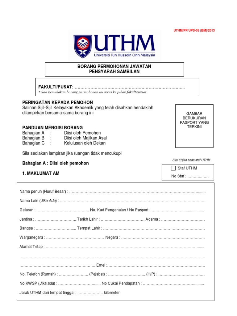 Ups 05 Bm Borang Permohonan Jawatan Pensyarah Sambilan
