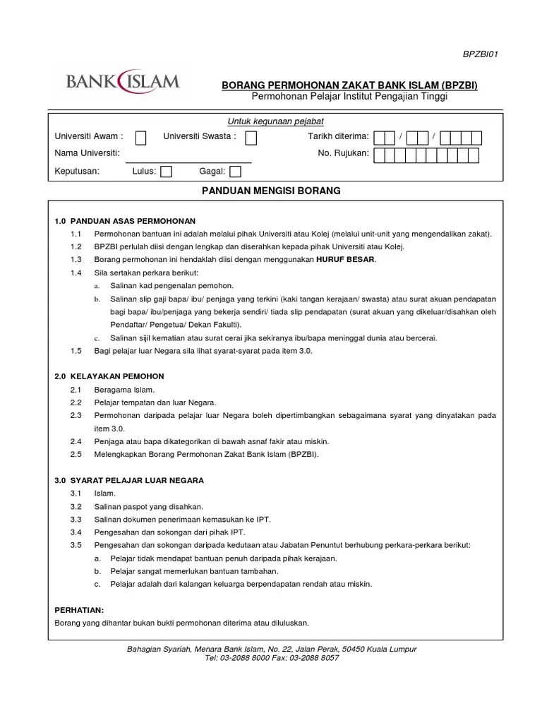 Borang Bantuan Zakat Bank Rakyat Pdf